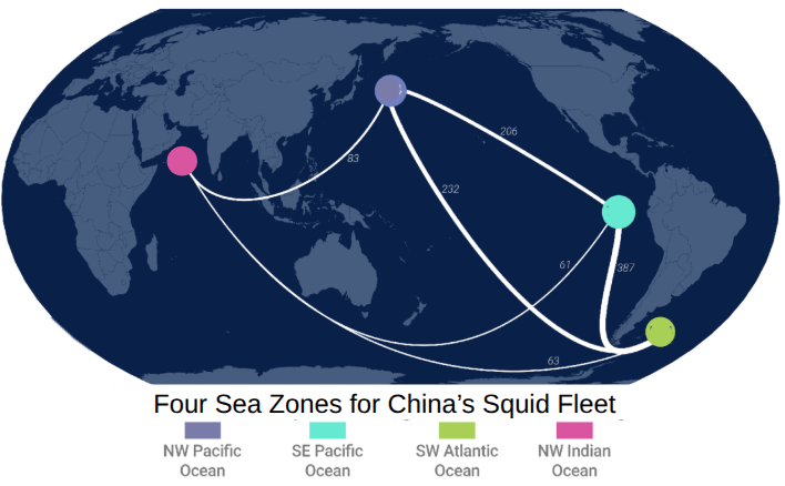 The indicator is divided into four maritime zones — Southeast Pacific, Southwest Atlantic, Northwest Pacific, and Indian Ocean — and considers different size categories by species, accurately reflecting trends in China’s distant-water squid market.