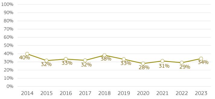 The EU self-sufficiency rate (i.e. the capacity of EU countries to meet demand through their own production) rose for the first time since 2018, reaching 38.1%.