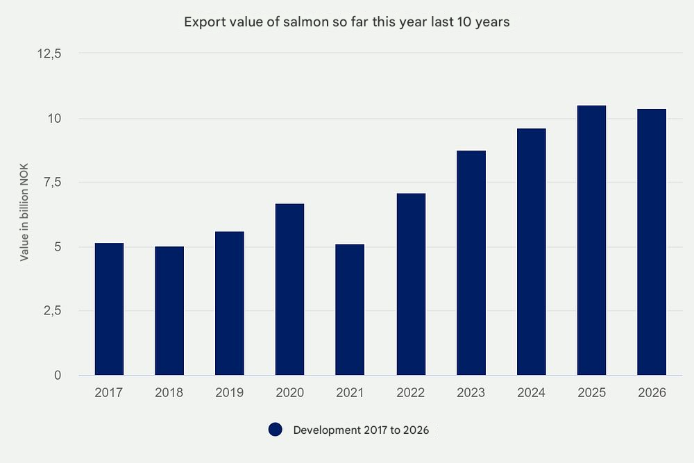 According to figures from the Norwegian Seafood Council, the value decline is primarily driven by lower global salmon prices, even as favourable biological conditions have boosted production volumes.
