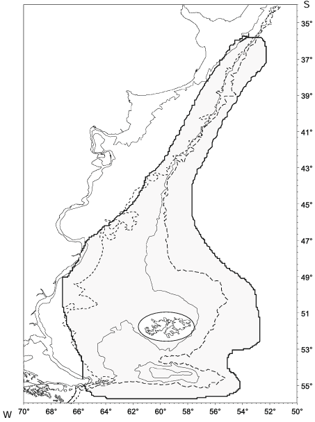 Distribution area of toothfish in the Southwest Atlantic. (Source: INIDEP)