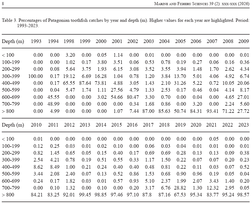 The scientific paper, titled “Towards a more selective Patagonian toothfish fishery: How measures implemented in Argentina reduced the proportion of juveniles in catches”, has been accepted for publication in the international journal MAFIS (Marine and Fishery Sciences).