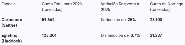 El acuerdo de 2026 introduce reducciones importantes en las cuotas totales admisibles de captura (TAC) para varias especies, en línea con los esfuerzos de conservación y basándose en evaluaciones científicas, como las del Consejo Internacional para la Exploración del Mar (CIEM).