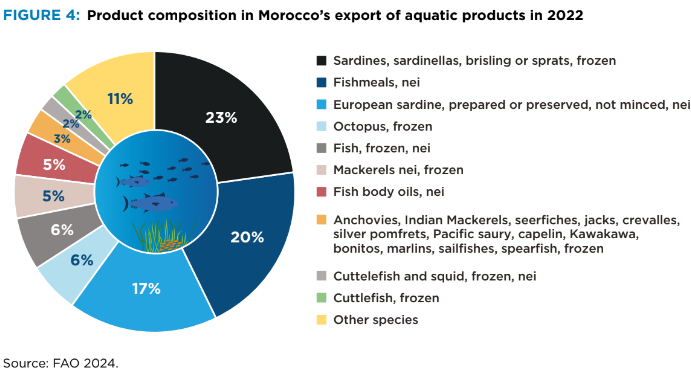 The urgency to expand aquaculture is heightened by the decline in fish stocks in Morocco, particularly sardines, which constitute the majority of small pelagic catches. The National Union of Fish Canning Industries (UNICOP) reported a 46% fall in sardine landings between 2022 and 2024, dropping from 965,000 tonnes to 525,000 tonnes, with overfishing and illegal practices cited as primary causes.