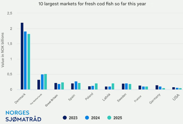 Norway exported 2,000 tonnes of fresh cod worth NOK 143 million (an increase of 53% in value and 36% in volume) in September 2025.