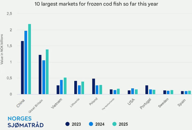 Fresh Cod Value Soars 53% as Farmed Cod Dominates, While Vietnam Becomes the Top Market for Frozen Cod.