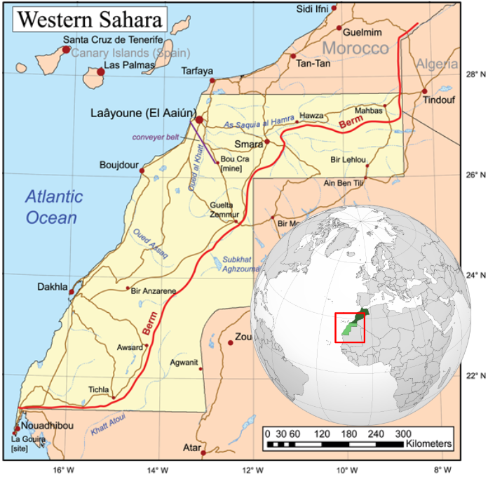Marruecos anexó el Sáhara Occidental en 1975. El Frente Polisario controla el territorio al este de la berma marroquí (muro)