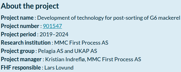 Lars Lovund, FHF - Fiskeri - og havbruksnæringens forskningsfond (Norwegian Seafood Research Fund) manager, summarized the findings: "This project shows how demanding it is to automate the handling of pelagic species, but also that there is potential for more precise sorting based on individual weight. With improved feeding technology, this can contribute to higher value creation in the pelagic consumer industry. The technology can also be adjusted to size sorting of other species such as, for example, herring, if this is commercially interesting.”
