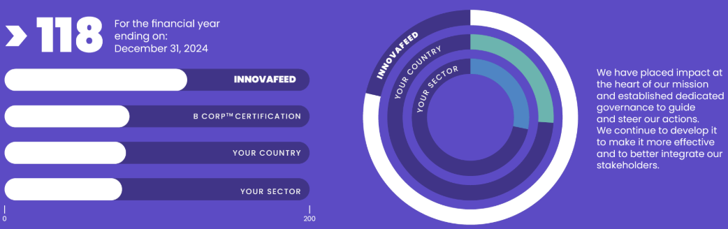 En 2025, Innovafeed ha logrado una puntuación general de 118 sobre 200, lo que representa una mejora significativa respecto a su puntuación inicial de 111. Esta progresión subraya la creciente madurez de la empresa en la integración del impacto en el núcleo de su modelo de negocio y gobernanza.