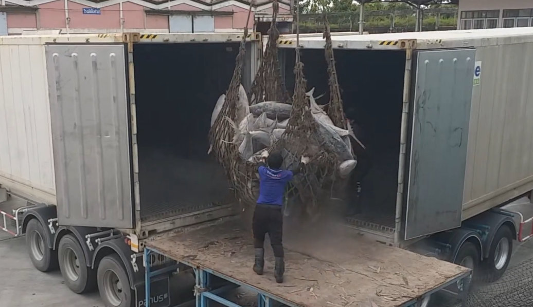 Descarga de atún aleta amarilla congelado en Bangkok. Foto: Archivo/FIS