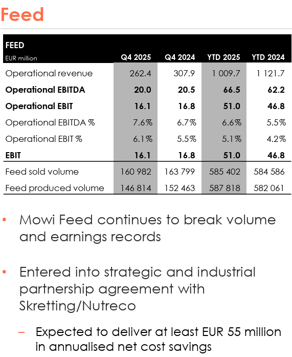 A major strategic move during the fourth quarter was the signing of an industrial partnership with feed producer Skretting, owned by Nutreco. The agreement is expected to deliver at least €55 million (approximately $60 million USD) in annualized net cost savings by securing high-performance feed at lower costs.