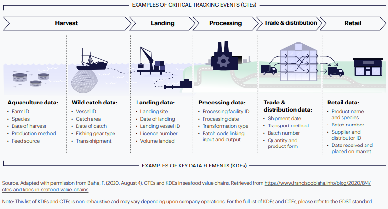 Trazabilidad en las cadenas de suministro de productos del mar alineada con el GDST. Haga clic en la imagen para ampliarla.