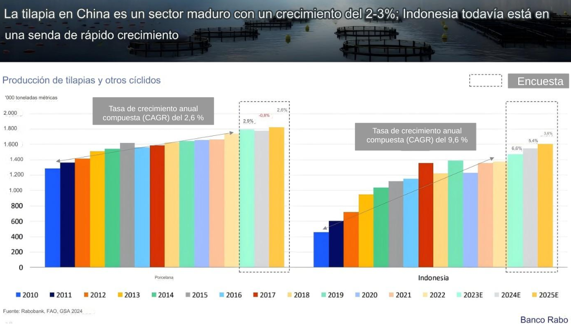 Estas tendencias reflejan una sólida recuperación y una trayectoria de crecimiento en el sector mundial de la tilapia, impulsada por la expansión de la producción en regiones clave.