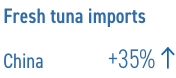 El fuerte crecimiento del turismo interno en China sigue creando buenas oportunidades de negocio en el sector de restaurantes, incluido el del sashimi. La demanda de atún no enlatado de alto valor sigue siendo fuerte en China, particularmente de las grandes cadenas de restaurantes japoneses, que muestran un mayor interés en el atún fresco transportado por vía aérea y en los filetes de atún congelados. Las importaciones de atún fresco en China aumentaron un 35% en la primera mitad de 2025, alcanzando las 693 toneladas. El atún rojo del Atlántico, principalmente de origen mediterráneo, representó la mayor parte del volumen con 573 toneladas, seguido por el atún rojo del sur de Australia con 109 toneladas. Con el reciente levantamiento de las restricciones a las importaciones de productos del mar de Japón, se anticipa un mayor crecimiento en el suministro en los próximos meses.
