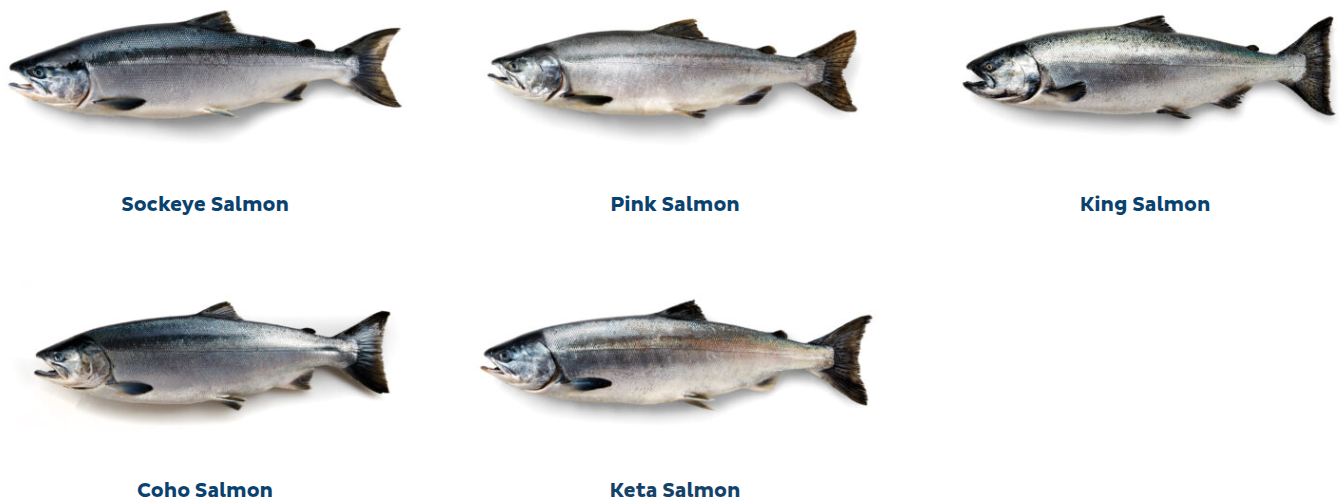 Pesquerías del sureste de Alaska meridional: Chinook 12.2 lbs., coho 5.0 lbs., keta 8.3 lbs., sockeye 5.4 lbs., rosado 3.6 lbs.