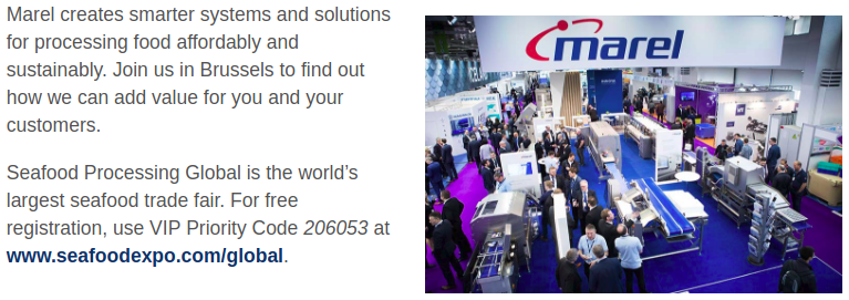 Marel creates innovation through partnership at Seafood Processing Global 2017, Brussels