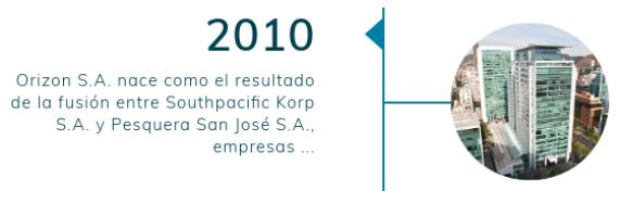 Historia de la compañia: Orizon S.A. nace como el resultado de la fusión entre Southpacific Korp S.A. (SPK) y Pesquera San José S.A., empresas que comenzaron con el desarrollo de la pesca industrial en Chile en la década del cuarenta.