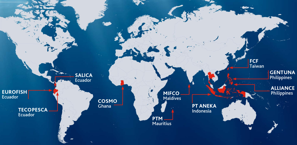 Nuestra oficina central tiene su sede en el Reino Unido y también tenemos una presencia cada vez mayor en toda Europa continental, que se gestiona desde nuestra oficina en los Países Bajos. También contamos con oficinas dedicadas a ventas y marketing en Polonia y Francia, una empresa de procesamiento de tomates en Italia e instalaciones de procesamiento de atún en Mauricio.