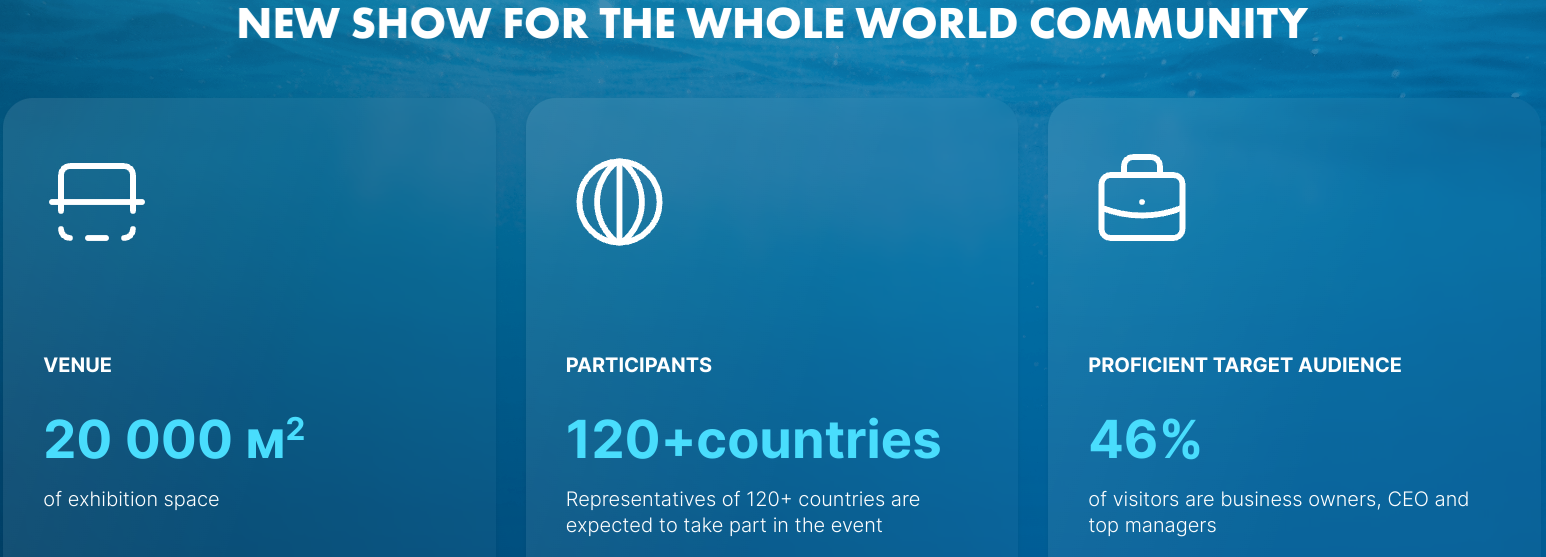 Con el objetivo de traer nuevas ideas a la comunidad pesquera mundial, la exposición unirá a las empresas de pesca, acuicultura, procesamiento, construcción naval, logística y embalaje. El nuevo espectáculo se basa en el "principio de los negocios más allá de la política". Libre de fronteras políticas y geográficas, el evento está diseñado para unir a los países de Europa y Asia, África y América Latina en un solo lugar.