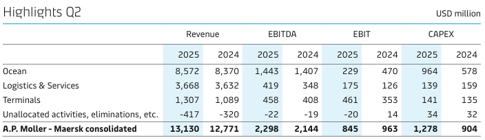 Copenhague – A.P. Moller - Maersk A/S (Maersk) ha anunciado que eleva su pronóstico financiero para todo el año 2025, tras registrar resultados sólidos en el segundo trimestre. A pesar de la incertidumbre geopolítica global y la presión continua sobre las tarifas de transporte, la compañía logró un crecimiento de ingresos del 2.8% y un EBIT de 845 millones de dólares, en línea con el año anterior.