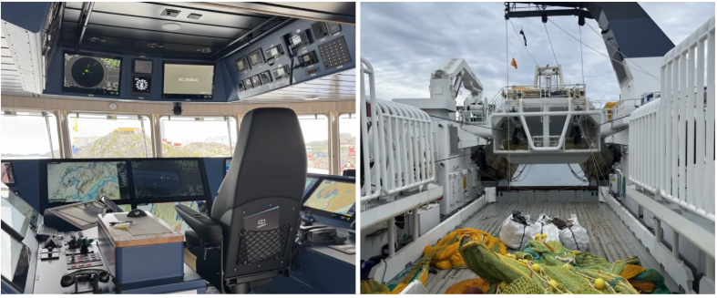 La cubierta del buque está equipada con un completo sistema de cabrestantes eléctricos Seaonics, con cuatro cabrestantes de arrastre de 55 toneladas gestionados por un sistema de control Scantrol, lo que le permite remolcar tres redes de arrastre simultáneamente. También lleva un paquete completo de aparejos de arrastre para camarón de Vónin, incluyendo dos pares de puertas de arrastre Storm 2, uno de los cuales es el par más grande jamás entregado con 18 m².