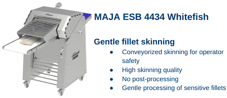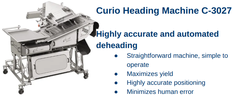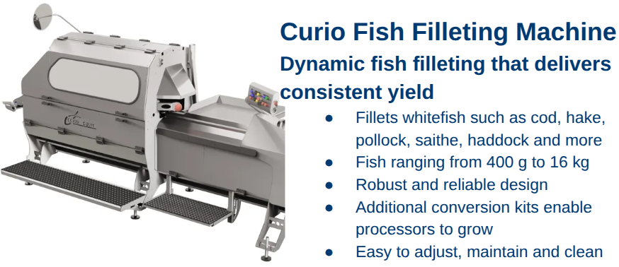 Technology Examples: Equipment like the Curio Heading Machine C-3027 and the MAJA ESB Whitefish Skinner range simplify complex operations, improving the ergonomics of workstations and allowing employees to focus on higher-value tasks.