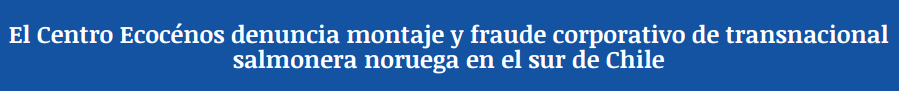 El Centro Ecocéanos rechaza el accionar de Marine Harvest en Chile y alerta a la opinión pública sobre el intento de esta transnacional de judicializar el conflicto con el Estado y la sociedad civil, intentando utilizar a los dirigentes de la pesca artesanal para presionar a Sernapesca, y lograr negociar un "ajuste de la fraudulenta cifra" del 27,2 % de salmones recuperados, para finalmente acordar políticamente un porcentaje ligeramente superior al 10 %, y dar cumplimiento "de manera viciada" con la LGPA.