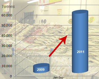 De acuerdo con datos oficiales publicados por ANSA, entre enero y septiembre de 2011 Brasil importó 58.300 toneladas de pescado chino, mientras que en el mismo lapso de 2009 recibió 5.900 toneladas.