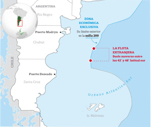 En la zona operan actualmente numerosas embarcaciones, entre ellas varios barcos gallegos, aunque la mayoría son poteros chinos, dedicados a la pesca de pota.