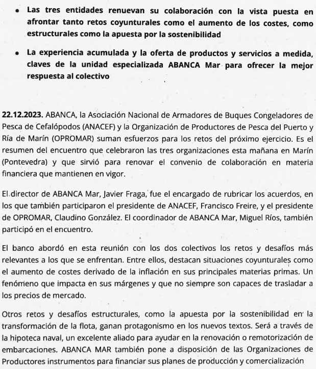 EN BREVE - Convenio de Colaboración 'ABANCA-ANACEF' Y 'ABANCA-OPROMAR'