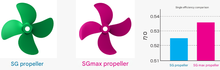 The SGmax Propeller incorporates advanced design technologies refined from the SG series, including hub vortex weakening technology. By optimizing blade area and rake distribution, the new propeller achieved an approximately 2% improvement in efficiency over the SG model during water tank testing. Compared with conventional MAU-type propellers, the SGmax demonstrates an estimated 5% efficiency gain. Cavitation levels remain comparable to the SG propeller, while strict hull vibration targets have been successfully met.