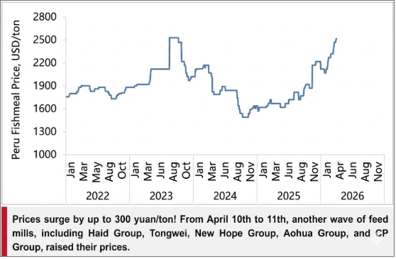 Feed prices across the aquaculture sector continue to surge, with leading companies such as Haid Group, Tongwei, New Hope Group, Aohua Group, and CP Group announcing fresh hikes on April 10–11.