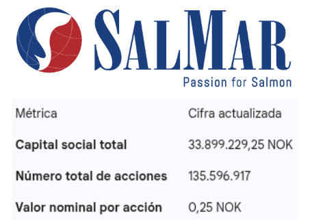 Tras el registro de estas nuevas acciones en el Registro Noruego de Empresas (Foretaksregisteret), la estructura financiera de SalMar quedará de la siguiente manera: