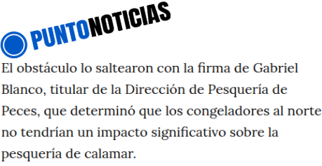 我们在之前的文章中谈到“利益冲突”,正如预料的那样,加罗内记者在文章中提出了一个典型案例:“CEPA申请在南纬41度以北以鱿鱼为目标物种进行捕捞”。记者写道:“前几天我们分析了联邦渔业委员会和INIDEP所制造的危险先例,因为他们没有将奥托·沃勒排除在该请求之外,而该请求明显产生了利益冲突,正如沿海捕捞船协会所警告的那样:国家研究局局长奥托·沃勒与提出申请的商会主席——其儿子奥托——之间存在明显冲突。”