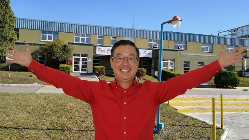Artificially generated image of Marcelo Mou in front of the Red Chambers Argentina plant