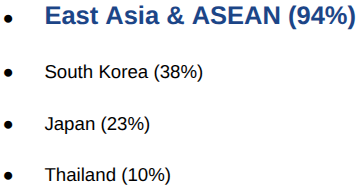 Vietnam's squid and octopus export market continues to be led by countries in the East Asia and ASEAN regions, collectively accounting for 94% of total turnover. South Korea remains the largest partner, commanding 38% of total exports, closely followed by Japan with 23%. Thailand, although an emerging market, has shown particularly strong growth, achieving 39% growth in the past 10 months. The main products exported to Thailand include dried squid and ready-to-eat grilled squid.