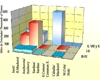 These landings were concentrated in regions V and X, which together received 799,000 tonnes, or 57.6 per cent of the total.