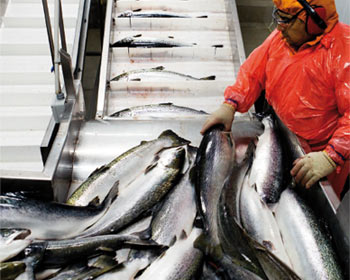 Sorting out salmon at a processing plant. (Photo: Australis Seafoods)