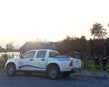 Sernapesca officials performing control duties in the Calbuco volcano area. (Photo: Sernapesca)
