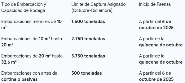 La medida clave de la nueva resolución es la aplicación de un sistema de límites de captura diferenciados para las embarcaciones artesanales con permiso de pesca vigente. Este enfoque busca asegurar un desarrollo progresivo y equilibrado de la pesquería en función del tamaño y la capacidad operativa de cada flota.