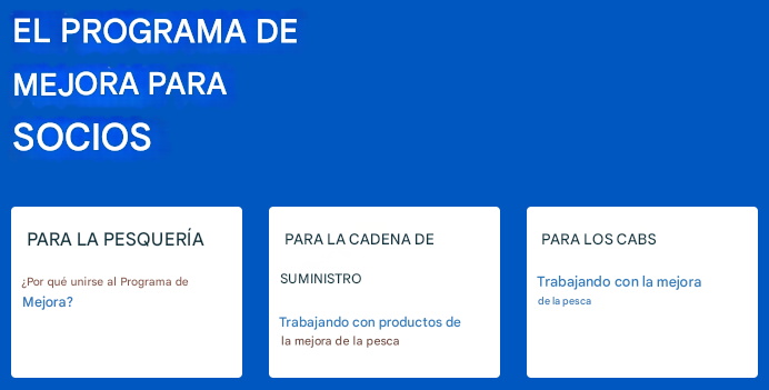 Lanzado en 2024, el Programa de Mejora del MSC fue diseñado para ayudar a pesquerías de todo el mundo —independientemente de su tamaño o ubicación— a implementar los cambios necesarios para cumplir con el riguroso Estándar de Pesquerías del MSC. Una vez que las pesquerías demuestran que cumplen con niveles mínimos aceptables de desempeño y cuentan con sistemas sólidos de trazabilidad, sus productos pueden ingresar a cadenas de suministro certificadas bajo el programa de Cadena de Custodia (Chain of Custody) del MSC.