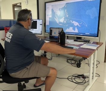 El asesor de pesca en alta mar de la Autoridad de Recursos Marinos de las Islas Marshall, Francisco Blaha, en la sede de la autoridad pesquera en Maju