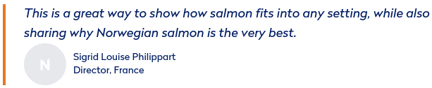 "This is a great way to show how salmon fits into any setting, while also sharing why Norwegian salmon is the very best", says Philippart.