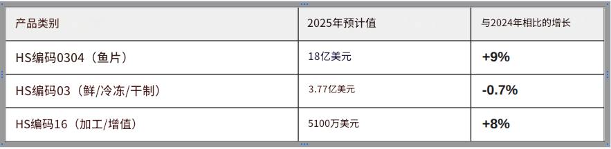 市场拓展战略:为减轻美国关税带来的影响,出口商正加速转向CPTPP、东盟和中东市场。巴西仍是高速增长的亮点市场,但其对冷冻鱼片的高度依赖也显示出产品多元化的潜力。