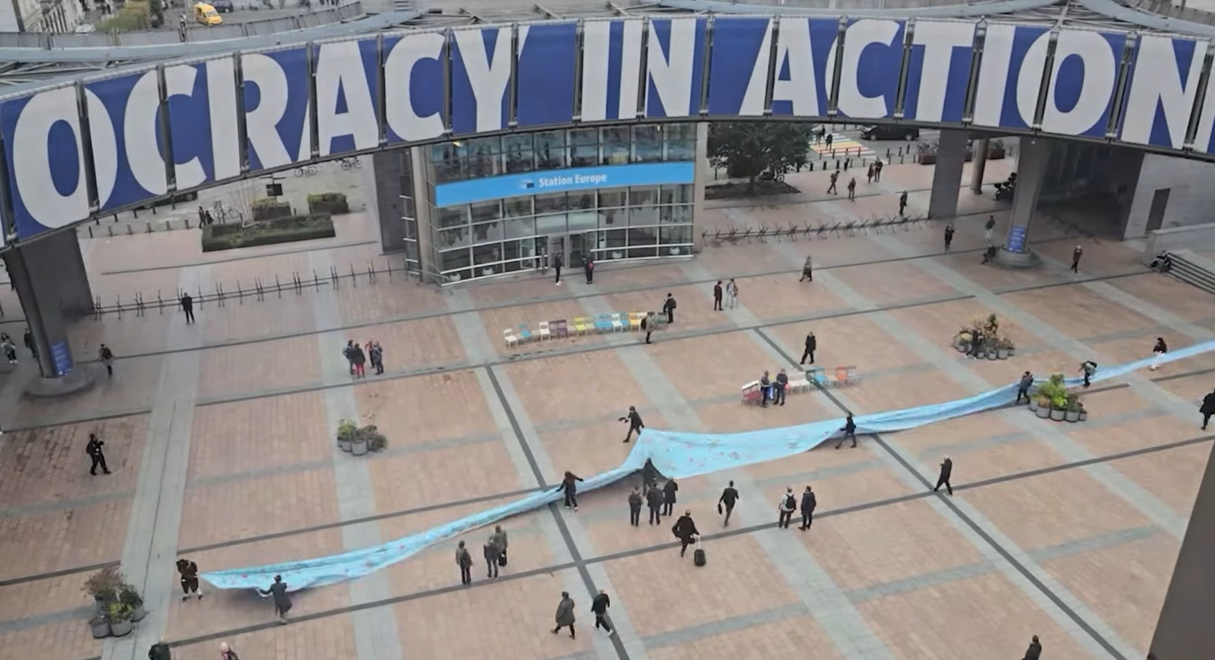 BRUSSELS – To mark the beginning of Ocean Week in Europe, concerned citizens and activists from the organization Ocean Rebellion staged a dramatic protest at the EU Parliament in Brussels on Wednesday, demanding an immediate end to bottom trawling by the industrial fishing fleet.