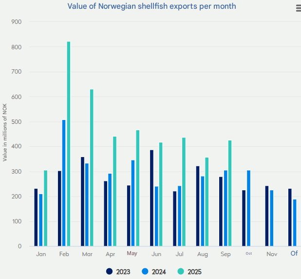 Josefine Voraa, responsible for shellfish at the Norwegian Seafood Council, stated, "The growth is driven by both higher volumes and increased export prices."