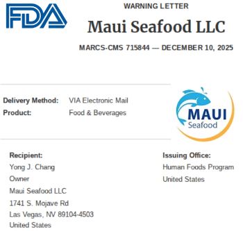 La U.S. Food and Drug Administration (FDA) emitió una carta de advertencia formal a Maui Seafood LLC, un procesador de productos pesqueros listos para el consumo (RTE) ubicado en 1741 S. Mojave Rd, Las Vegas, Nevada 89104, tras detectar graves violaciones de seguridad alimentaria y la presencia de Listeria monocytogenes en sus instalaciones.