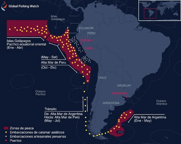 Evidencia satelital desata caso legal contra un buque pesquero chino en Chile